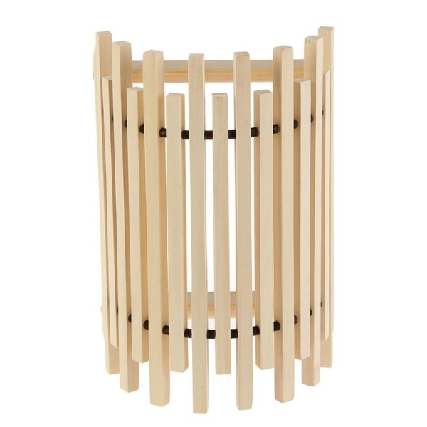 Настенный абажур для светильника в бане или сауне. Изготовлен из липы. Устойчив к влалажности и высоким температурам. ... Абажур для бани и сауны представляет собой решетчатую конструкцию, набранную из липовых реек. Древесина липы отлично подходит для использования в микроклимате парилки, который характеризуется высокой влажностью и перепадами температуры.