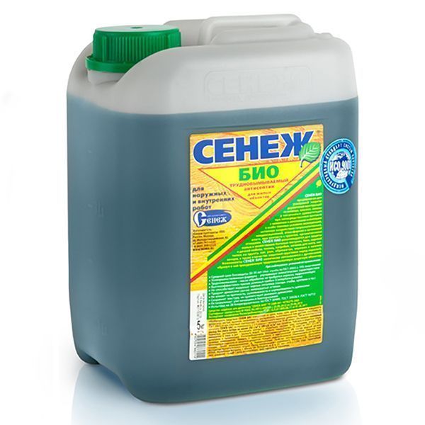 Антисептик СЕНЕЖ БИО предназначен для усиленной защиты древесины от гниения, плесени, синевы и насекомых-древоточцев при эксплуатации в непосредственном контакте с человеком и домашними животными внутри помещений и на открытом воздухе в особо тяжелых условиях увлажнения, длительном воздействии атмосферной или почвенной влаги, при контакте с грунтом, органическими отходами, в том числе, в условиях тропического и тропического влажного климата самостоятельно или в качестве биозащитной грунтовки под ЛКМ.