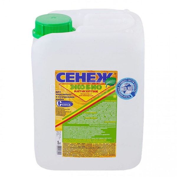 Антисептик Сенеж Экобио предназначен для защиты древесины от гниения, плесени, синевы и насекомых-древоточцев внутри помещений и на открытом воздухе (под навесом) в условиях гигроскопического и конденсационного увлажнения без контакта с грунтом, воздействия атмосферных осадков, почвенной влаги самостоятельно или в качестве биозащитной грунтовки под ЛКМ. Допускается применять Сенеж Экобио для защиты элементов наружной службы, подверженных атмосферным осадкам, при последующем покрытии влагостойким лакокрасочным материалом.