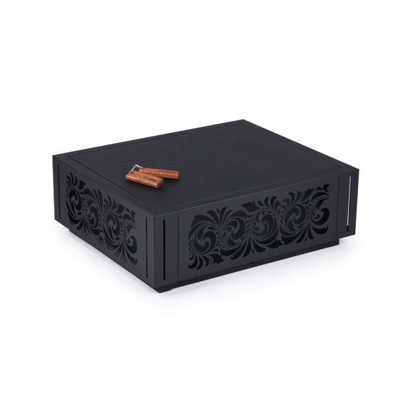Дизайн облицовки в стиле традиционной хохломской росписи выполнен в элегантном черном цвете.