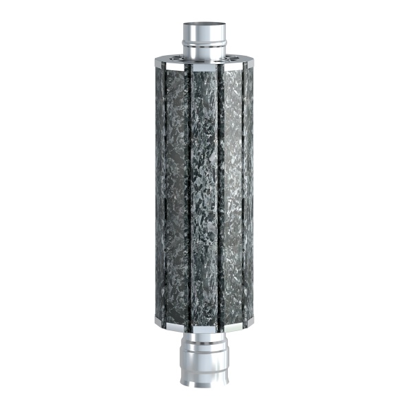 Экономайзер изготовлен из нержавеющей стали толщиной 1 миллиметр, и может быть установлен в качестве замены первого метра дымохода в парной. Конструкция экономайзера предусматривает установку в качестве внешней облицовки десяти ламелей из натурального камня.