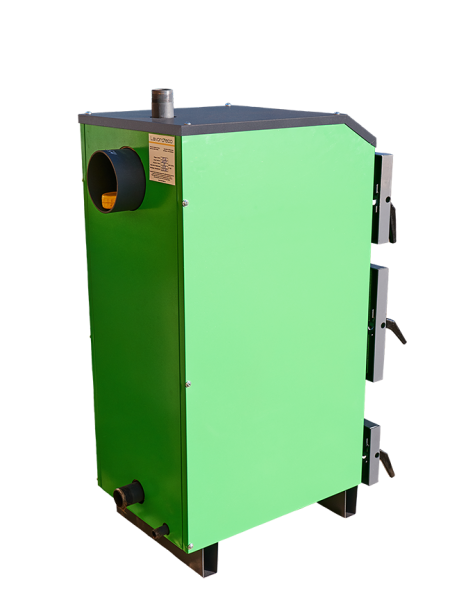 Котел работает как в закрытых так и в открытых системах отопления, выполнен из стали марки 09Г2С толщиной 4 мм. Все стенки и перегородки котла водонаполнены. Котел оснащен большими и удобными дверцами с механизмом затяжки плотности прилегания. Благодаря этому его удобно чистить и обслуживать, уплотнительный шнур используется керамический. Также все котлы оборудованы местом для установки электрического ТЭНа.
