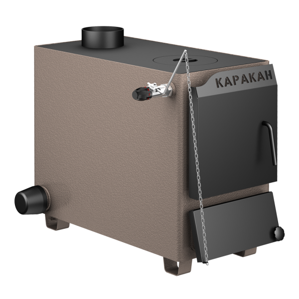 Котел Каракан - 12 ТПЭ3 предназначен для обогрева жилых и производственных объектов. Корпус котла сварной, из стали толщиной 3 мм. Длина используемых дров - до 60 см. Имеется варочная плита с одной конфоркой. Возможна установка автоматического регулятора тяги. Подключение подачи и обратки – универсальное (справа и слева). Предусмотрена возможность установки блока ТЭНов. Для управления ТЭНами предназачены пульты ПУЭ и терморегуляторы производства ГК СТЭН.