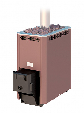 Конвекционная печь с толстостенной топкой. В печи две каменки – открытая и закрытая для получения самого легкого пара. Благодаря толщине стенок топки в 8 мм и защитным вставкам (приобретаются отдельно) печь можно топить не только дровами, но и углем