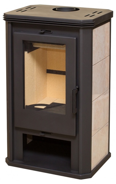 Компактная пристенная печь с диаметром дымоходного патрубка 115 мм.