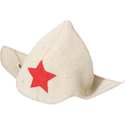 Оригинальная, мягкая и удобная шапка для бани в виде буденовки для современных героев, имеющих отличное чувство юмора. Выполнена из шерсти белого цвета, имеет оптимальную форму для защиты головы от перегрева в парной от самой макушки до ушей.