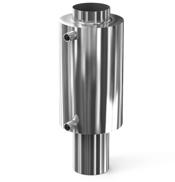Для этой цели на дымоход печи устанавливается универсальный регистр (теплообменник), из нержавеющей стали с двумя штуцерами ¾ дюйма, который с помощью соединительных труб и дренажного крана соединяется с выносным баком.